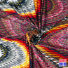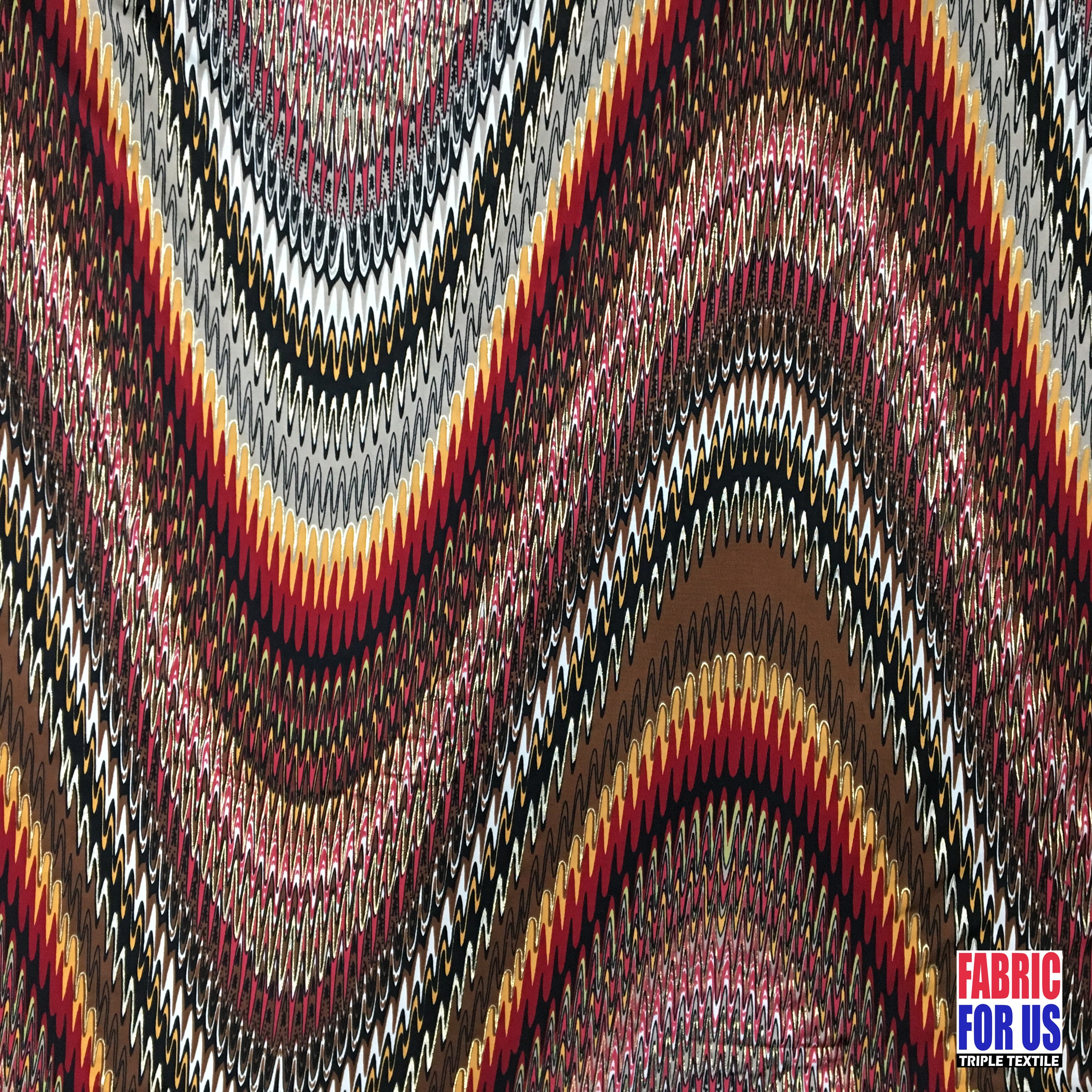 Multi-color wave design with gold-color linings on the fabric. The distinct linings scattered on various linear patterns