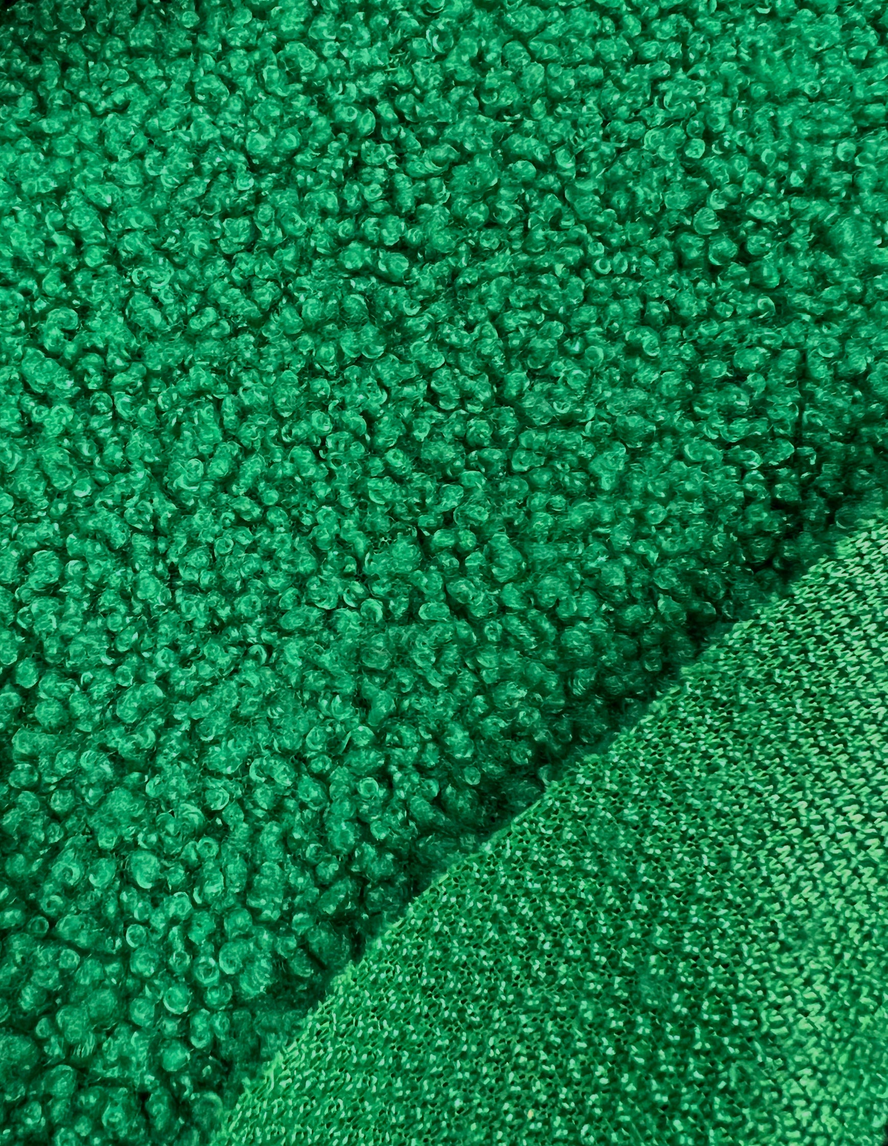 Sherpa is a curly piled fabric structure made of synthetic yarns like acrylic or polyester. The texture is soft and fluffy, useful in jackets resembling wool or sheepskin on the piled side. Sherpa fleece is a knitted type of fabric usable in line clothing and winter wear.